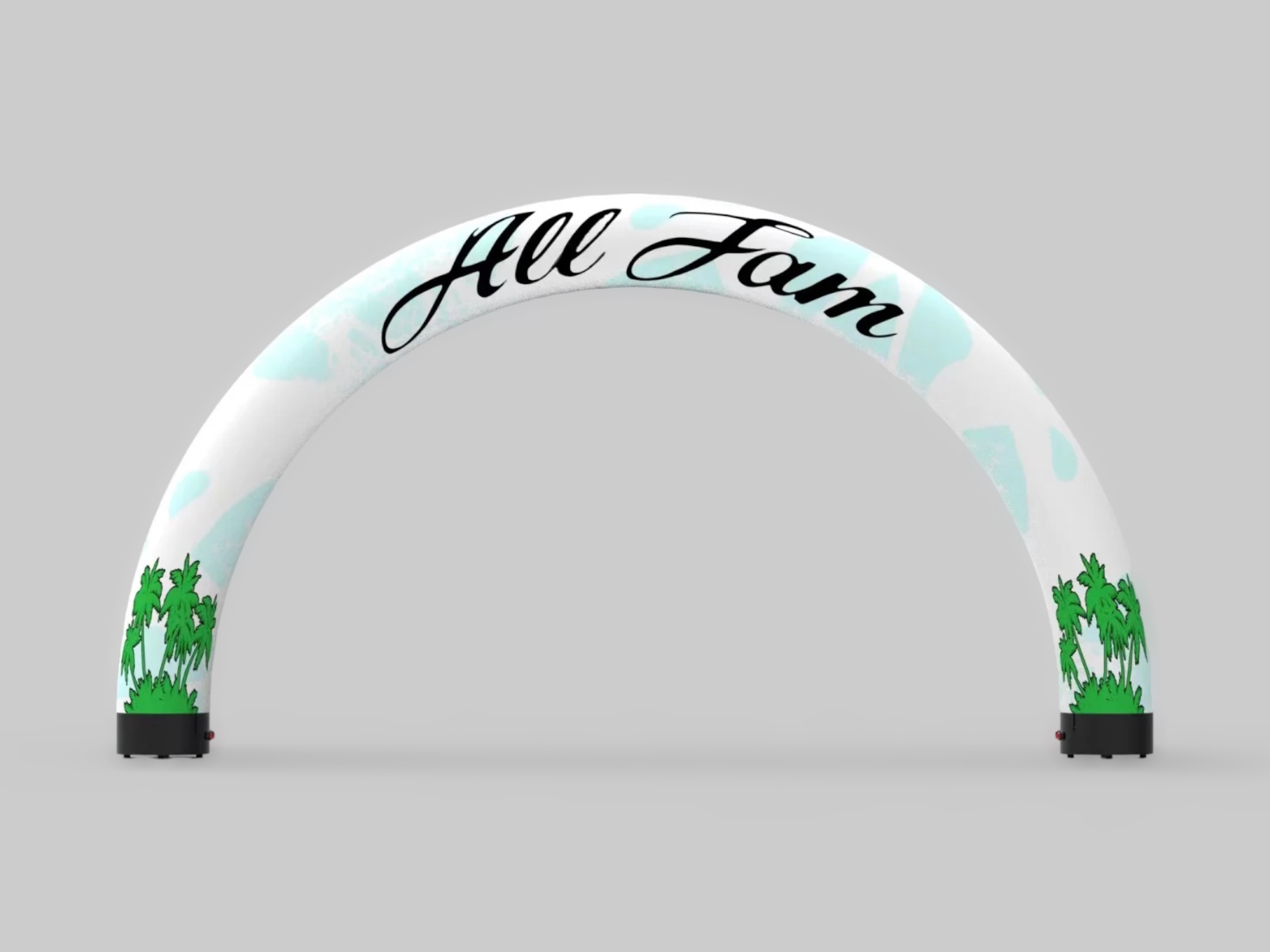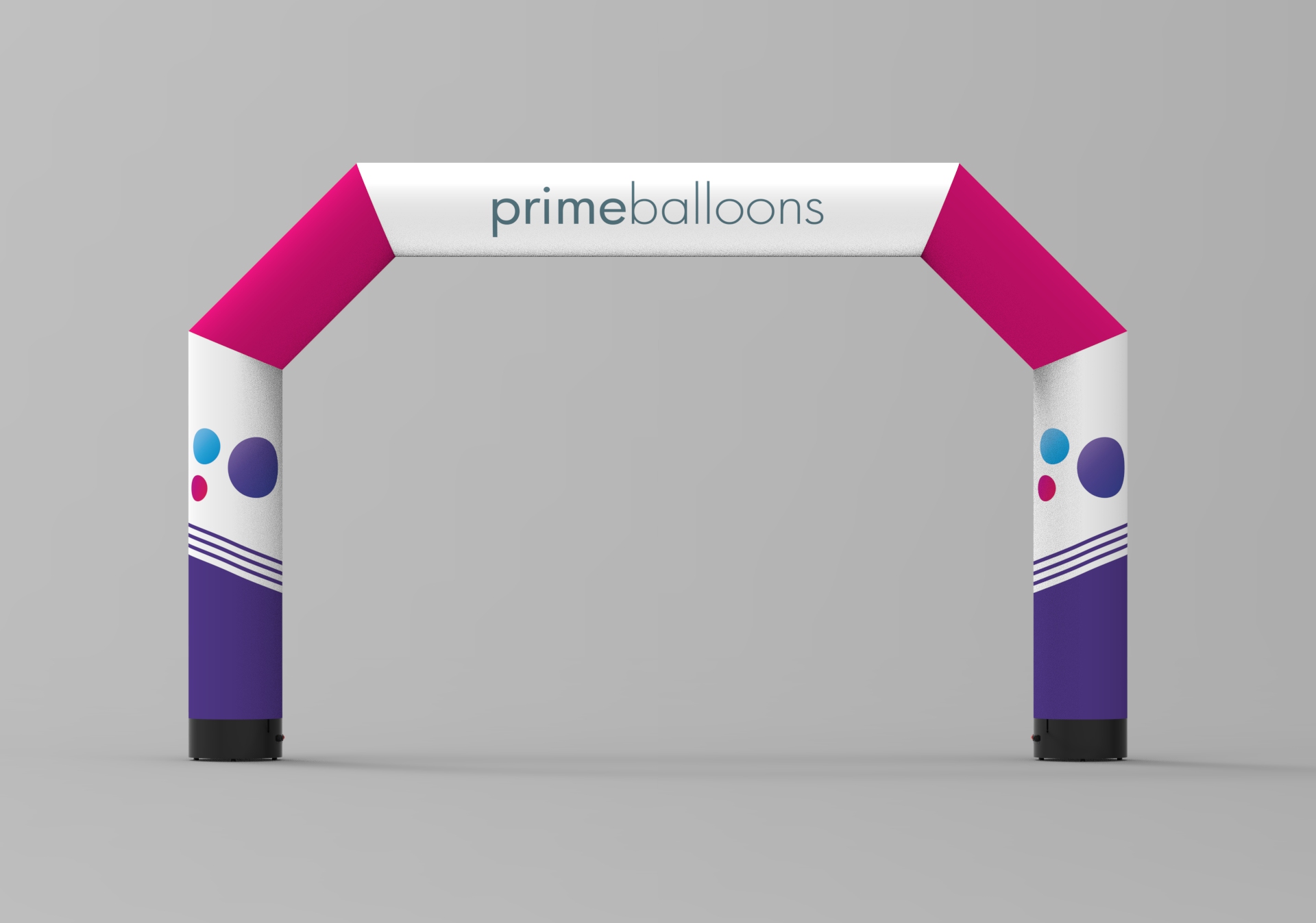 La personalización puede realizarse mediante impresión directa o mediante el uso intercambiable de banderolas, que se fijan a las estructuras del arco hinchable mediante velcro.
